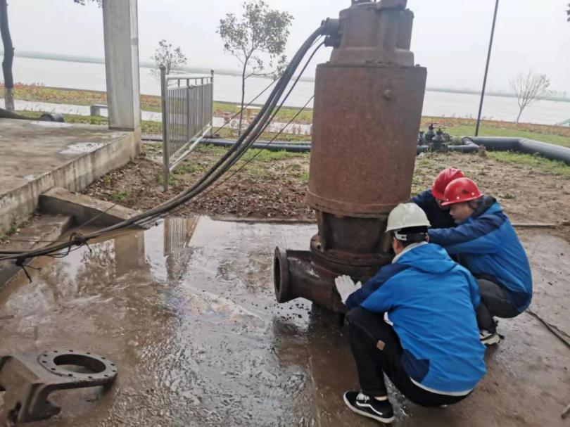 4月6日,宜城天河供水公司水廠按崗位標準化管理要求對取水車間南側沉井潛泵進行了月度檢查維護,檢查時發(fā)現(xiàn)4#潛泵在運行時會偶爾發(fā)出‘叮咚’撞擊聲,再觀察4#取水潛泵控制柜電流、電壓、流量正常后,機修人員初步判斷4#潛泵進水口周圍可能有異物。