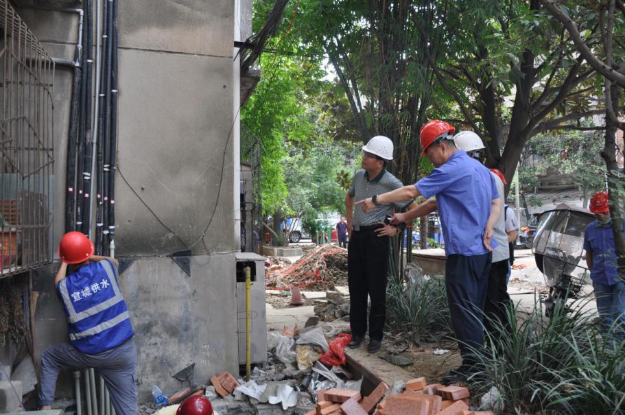 集團公司領導一行先后到水廠泵房、老舊小區(qū)改造施工現(xiàn)場、搶修工地,為堅守在高溫一線的職工送去防暑降溫用品。現(xiàn)場查看了水廠泵房運行情況,詢問了夏季用水高峰期保障供水安全的具體措施;在經(jīng)貿(mào)小區(qū)家屬樓戶表改造及消火栓安裝工程現(xiàn)場,聽取了現(xiàn)場帶班人員對工程計劃、施工進度等情況匯報,并強調(diào)黨員干部要結合下基層察民情解民憂暖民心實踐活動,深入一線,了解老百姓的所求所需,更好地服務于人民群眾。